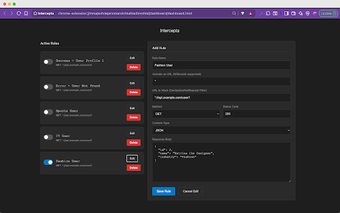 该工具不仅支持各种请求类型,如 GET、POST、PUT 和 DELETE,还提供模拟不同响应场景的能力,包括错误条件。直观的界面允许快速切换规则,使其成为提供完美演示和测试边缘案例的理想选择。作为一个免费工具,Intercepta 确保开发人员可以在没有额外成本的情况下提高他们的生产力。